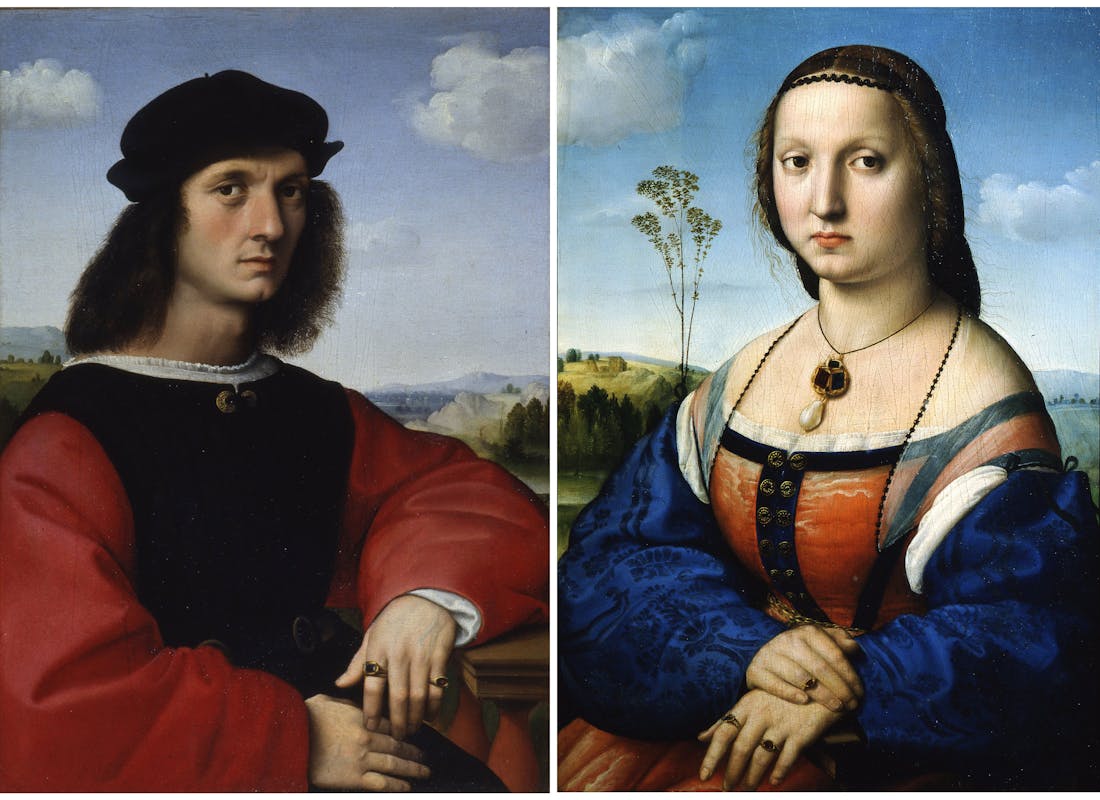 Tra i più famosi ritratti coniugali vanno ricordati quelli commissionati a Raffaello per celebrare l’unione, avvenuta pochi anni prima, dell’aristocratica Maddalena Strozzi con il mercante d’arte Agnolo Doni.
